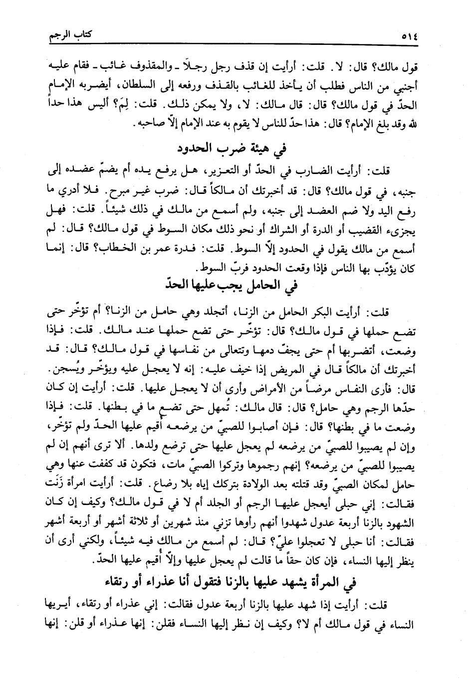 قُلْتُ: أَرَأَيْتَ إنْ كَانَ حَدُّهَا الرَّجْمَ وَهِيَ حَامِلٌ؟ قَالَ: قَالَ مَالِكٌ: تُمْهَلُ حَتَّى تَضَعَ مَا فِي بَطْنِهَا.