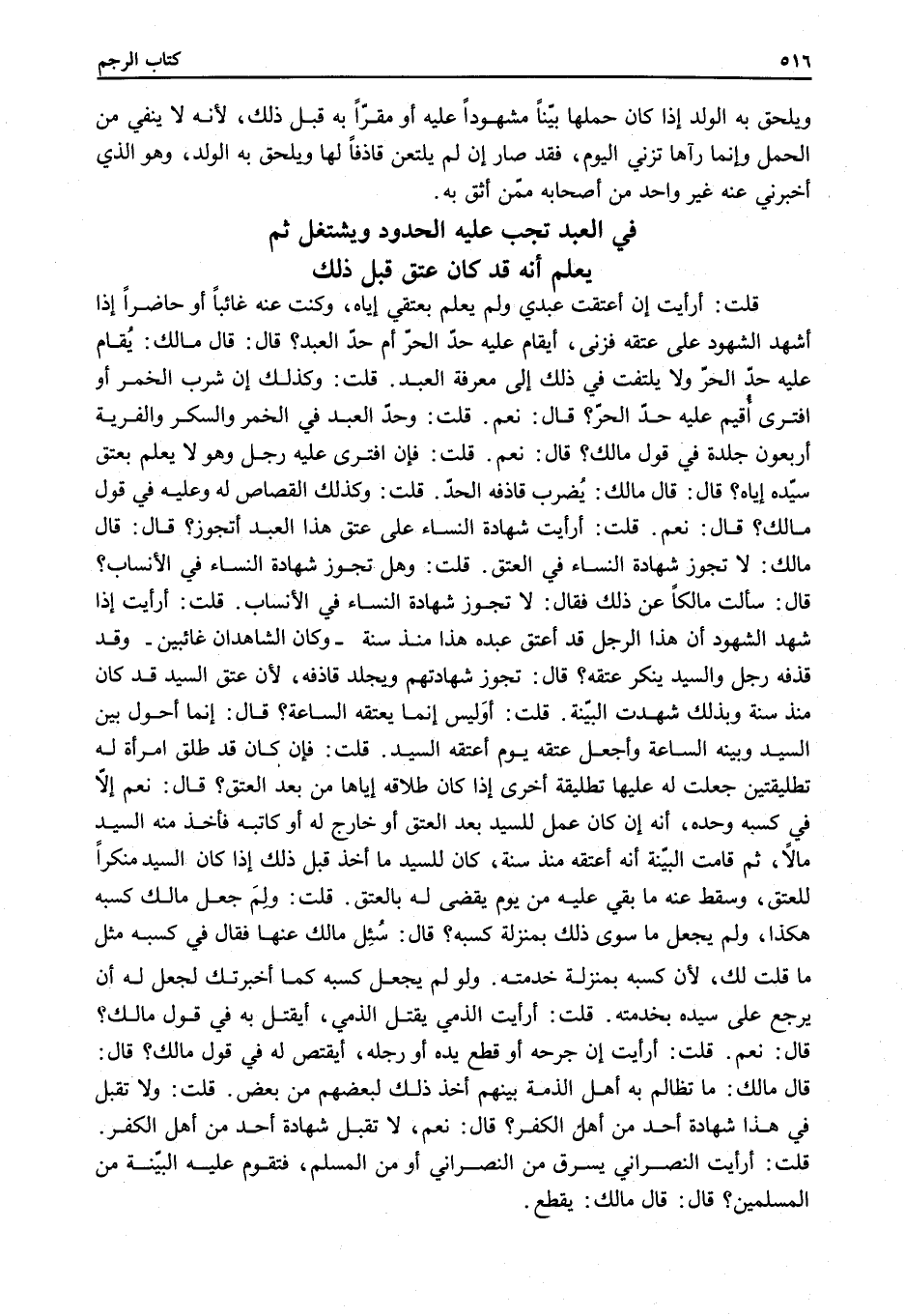 َ قُلْتُ: أَرَأَيْتَ إنْ أَعْتَقْت عَبْدِي وَلَمْ يَعْلَمْ بِعِتْقِي إيَّاهُ، وَكُنْتُ عَنْهُ غَائِبًا أَوْ حَاضِرًا إذَا أُشْهِدُ الشُّهُودُ عَلَى عِتْقِهِ فَزَنَى، أَيُقَامُ عَلَيْهِ حَدُّ الْحُرِّ أَمْ حَدُّ الْعَبْدِ قَالَ مَالِكٌ: يُقَامُ عَلَيْهِ حَدُّ الْحُرِّ وَلَا يُلْتَفَتُ فِي ذَلِكَ إلَى مَعْرِفَةِ الْعَبْدِ.