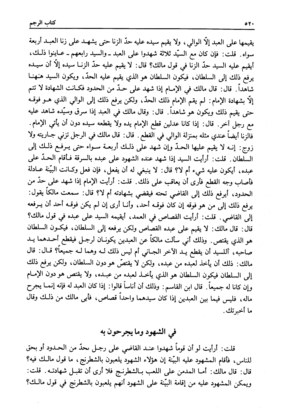 ِ قُلْتُ: أَرَأَيْتَ لَوْ أَنَّ قَوْمًا شَهِدُوا عِنْدَ الْقَاضِي عَلَى رَجُلٍ بِحَدٍّ مِنْ الْحُدُودِ أَوْ بِحَقٍّ لِلنَّاسِ، فَأَقَامَ الْمَشْهُودُ عَلَيْهِ الْبَيِّنَةَ أَنَّ هَؤُلَاءِ الشُّهُودَ يَلْعَبُونَ بِالشِّطْرَنْجِ مَا قَوْلُ مَالِكٍ فِيهِ؟