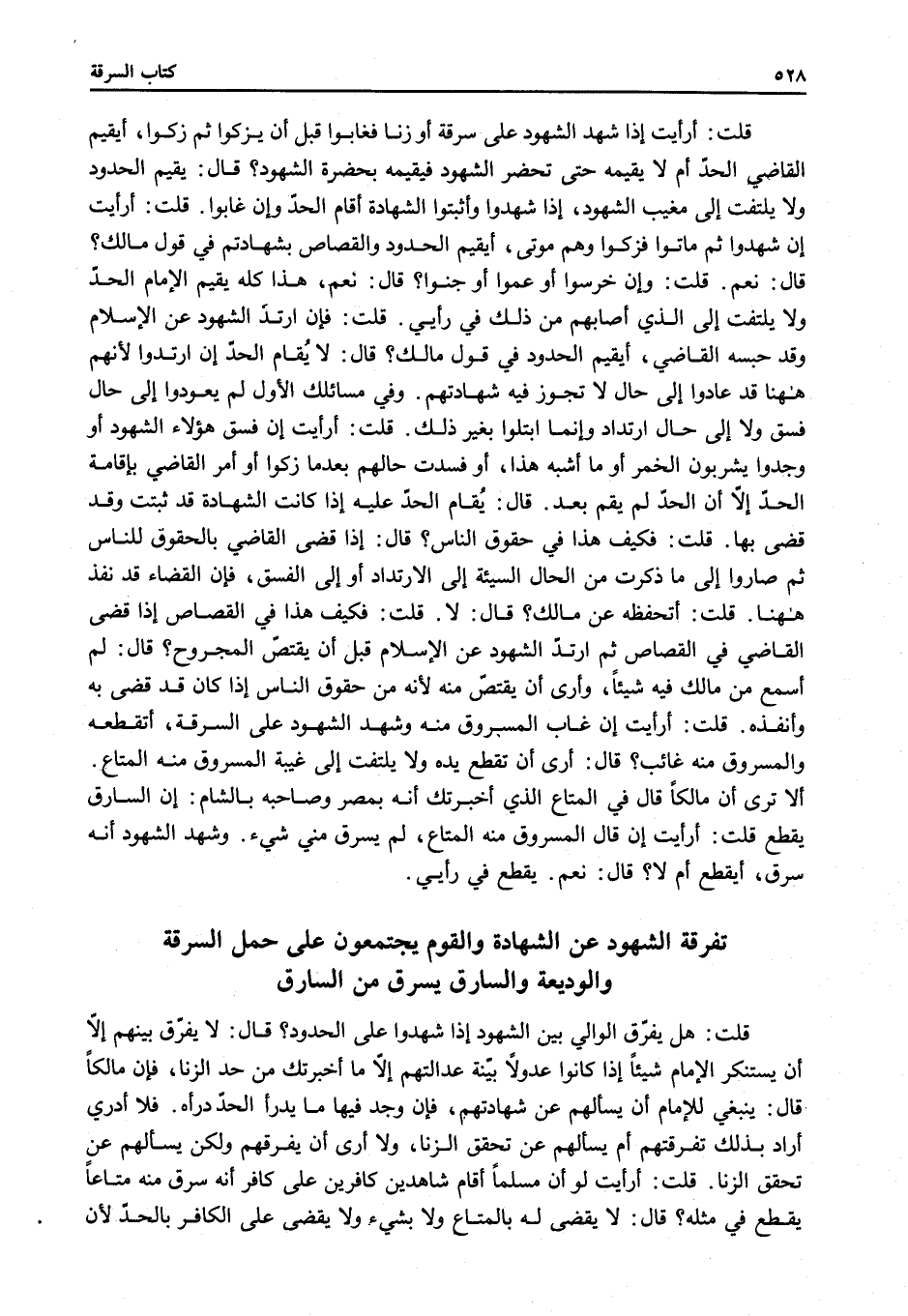 قُلْتُ: أَرَأَيْتَ إذَا شَهِدَ الشُّهُودُ عَلَى سَرِقَةٍ أَوْ زِنًا فَغَابُوا قَبْلَ أَنْ يُزَكَّوْا ثُمَّ زُكُّوا، أَيُقِيمُ الْقَاضِي الْحَدَّ أَمْ لَا يُقِيمُهُ حَتَّى تَحْضُرَ الشُّهُودُ فَيُقِيمَهُ بِحَضْرَةِ الشُّهُودِ؟ قَالَ: يُقِيمُ الْحُدُودَ وَلَا يَلْتَفِتُ إلَى مَغِيبِ الشُّهُودِ، إذَا شَهِدُوا وَأَثْبَتُوا الشَّهَادَةَ أَقَامَ الْحَدَّ وَإِنْ غَابُوا