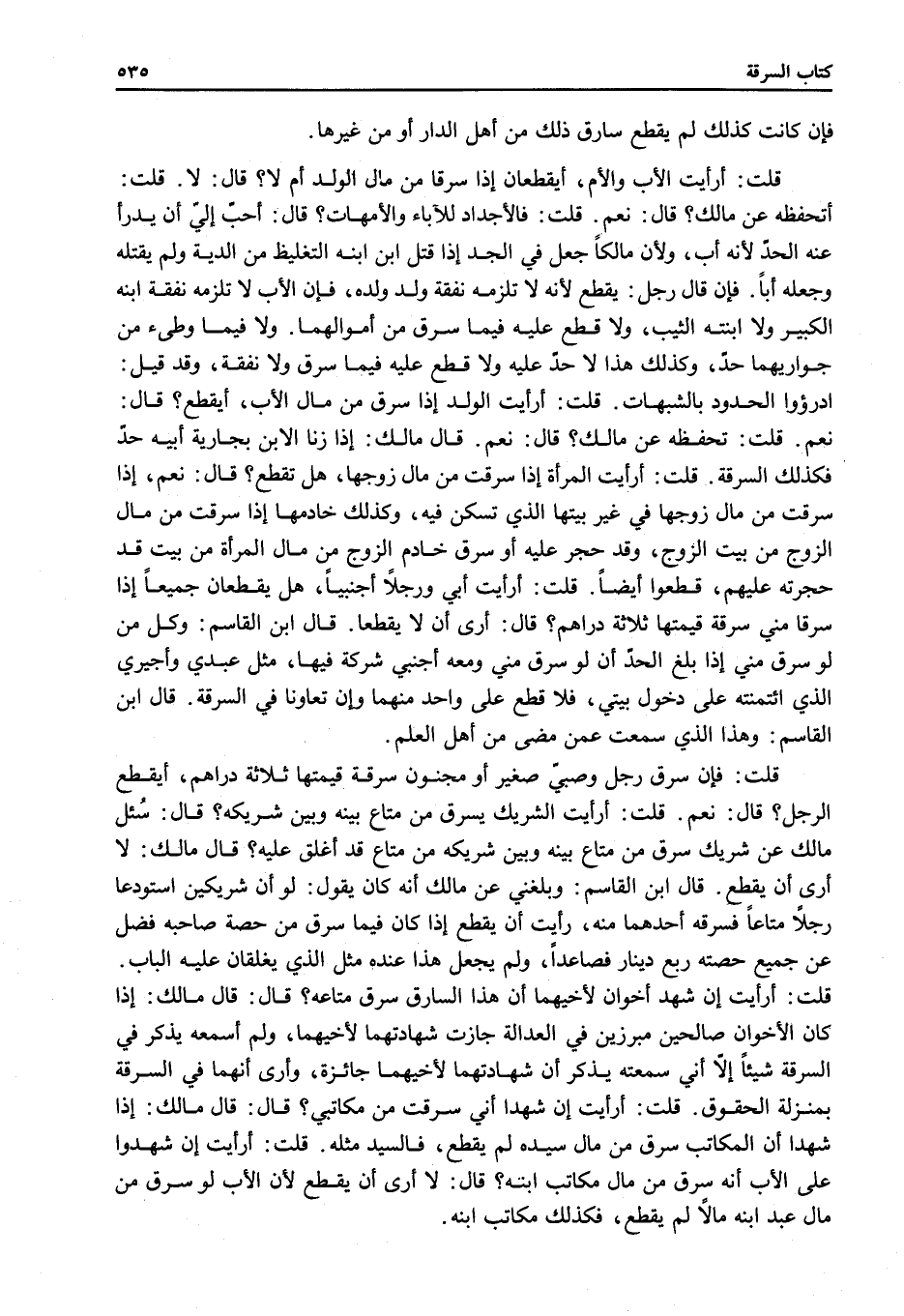 قُلْتُ: أَرَأَيْتَ الشَّرِيكَ يَسْرِقُ مِنْ مَتَاعٍ بَيْنَهُ وَبَيْنَ شَرِيكِهِ؟ قَالَ سُئِلَ مَالِكٌ عَنْ شَرِيكٍ سَرَقَ مِنْ مَتَاعٍ بَيْنَهُ وَبَيْنَ شَرِيكِهِ مِنْ مَتَاعٍ قَدْ أُغْلِقَ عَلَيْهِ؟