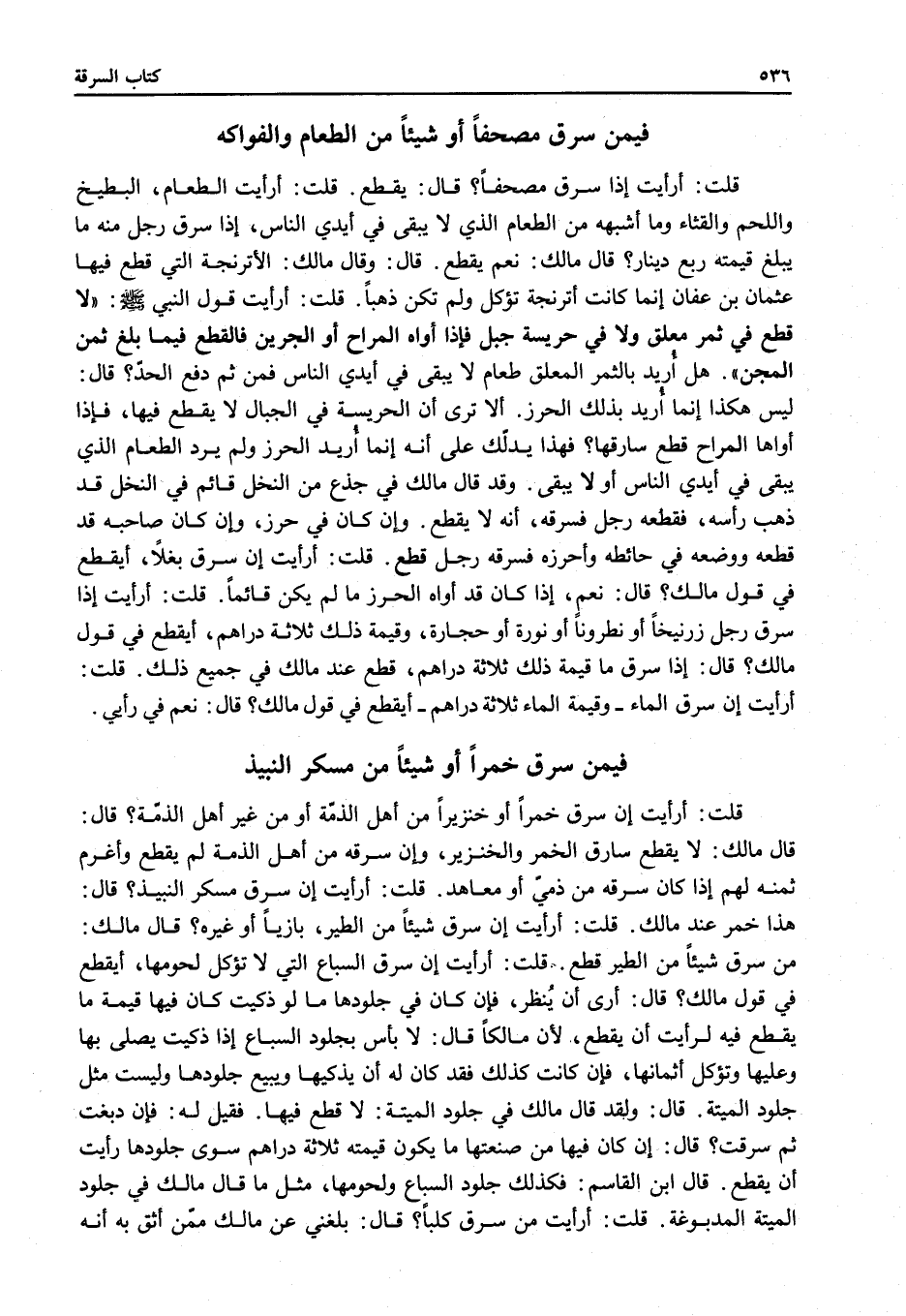 ِ قُلْتُ: أَرَأَيْتَ إذَا سَرَقَ مُصْحَفًا؟ قَالَ: يُقْطَعُ.