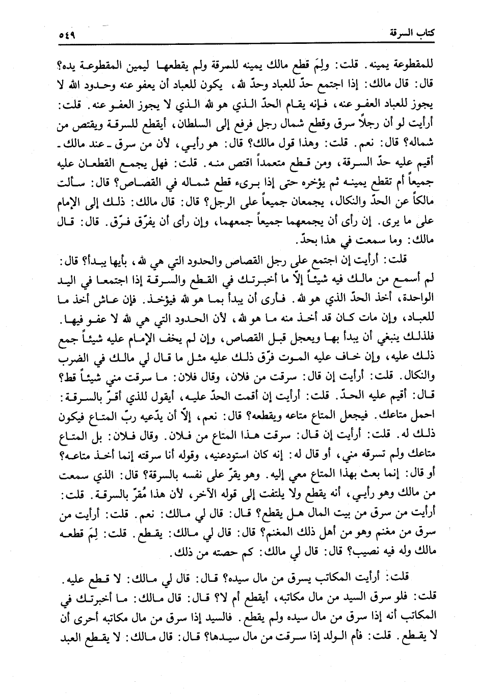 قُلْتُ: أَرَأَيْتَ الْمُكَاتَبَ يَسْرِقُ مِنْ مَالِ سَيِّدِهِ؟ قَالَ: قَالَ لِي مَالِكٌ: لَا قَطْعَ عَلَيْهِ