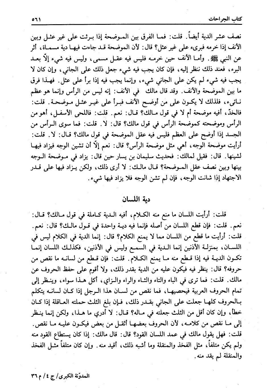 قُلْتُ: فَهَلْ يَقُولُ مَالِكٌ فِي عَمْدِ اللِّسَانِ الْقَوَدُ؟