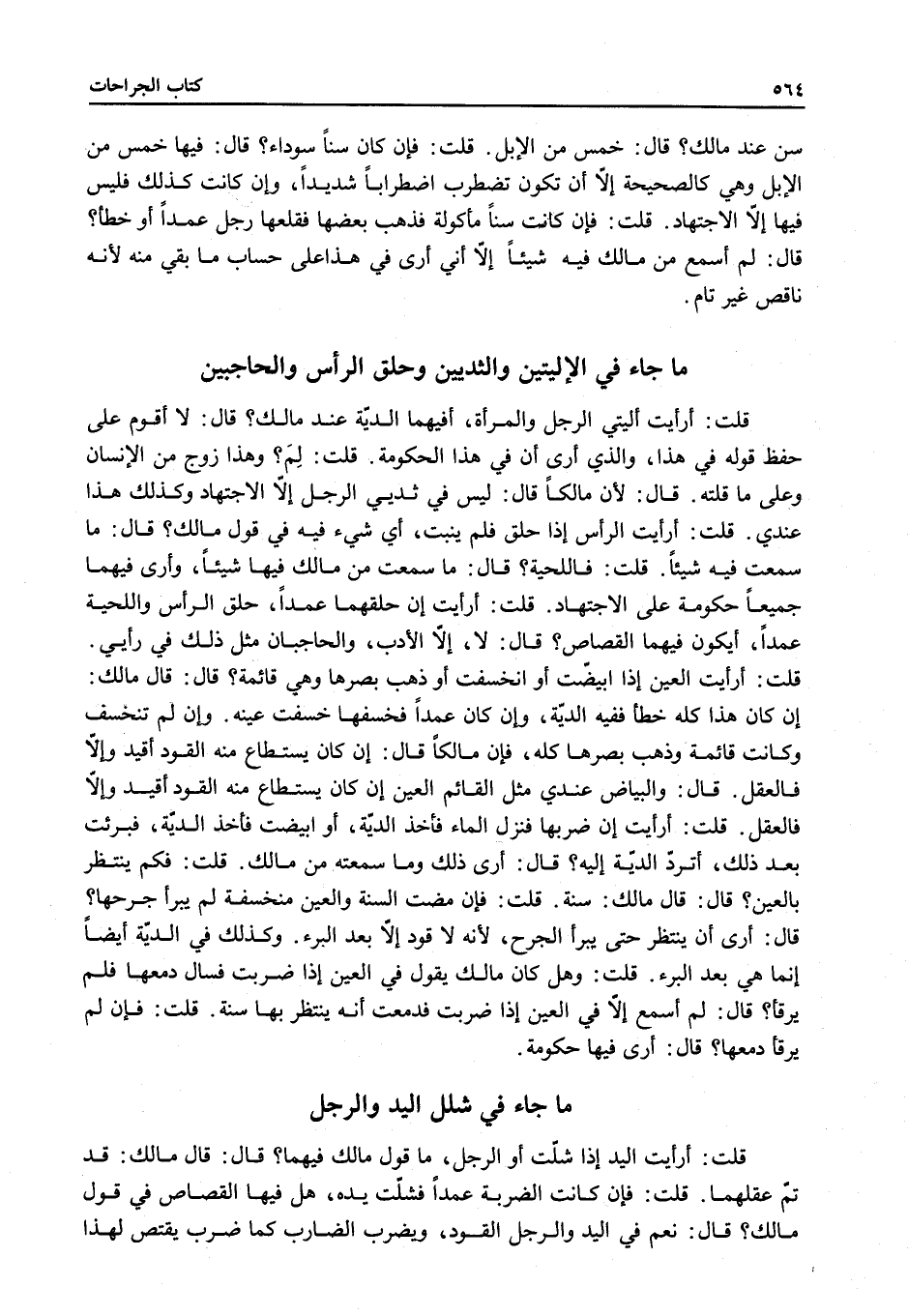 مَا جَاءَ فِي شَلَلِ الْيَدِ وَالرِّجْلِ قُلْتُ: أَرَأَيْتَ الْيَدَ إذَا شُلَّتْ أَوْ الرِّجْلَ، مَا قَوْلُ مَالِكٍ فِيهِمَا؟