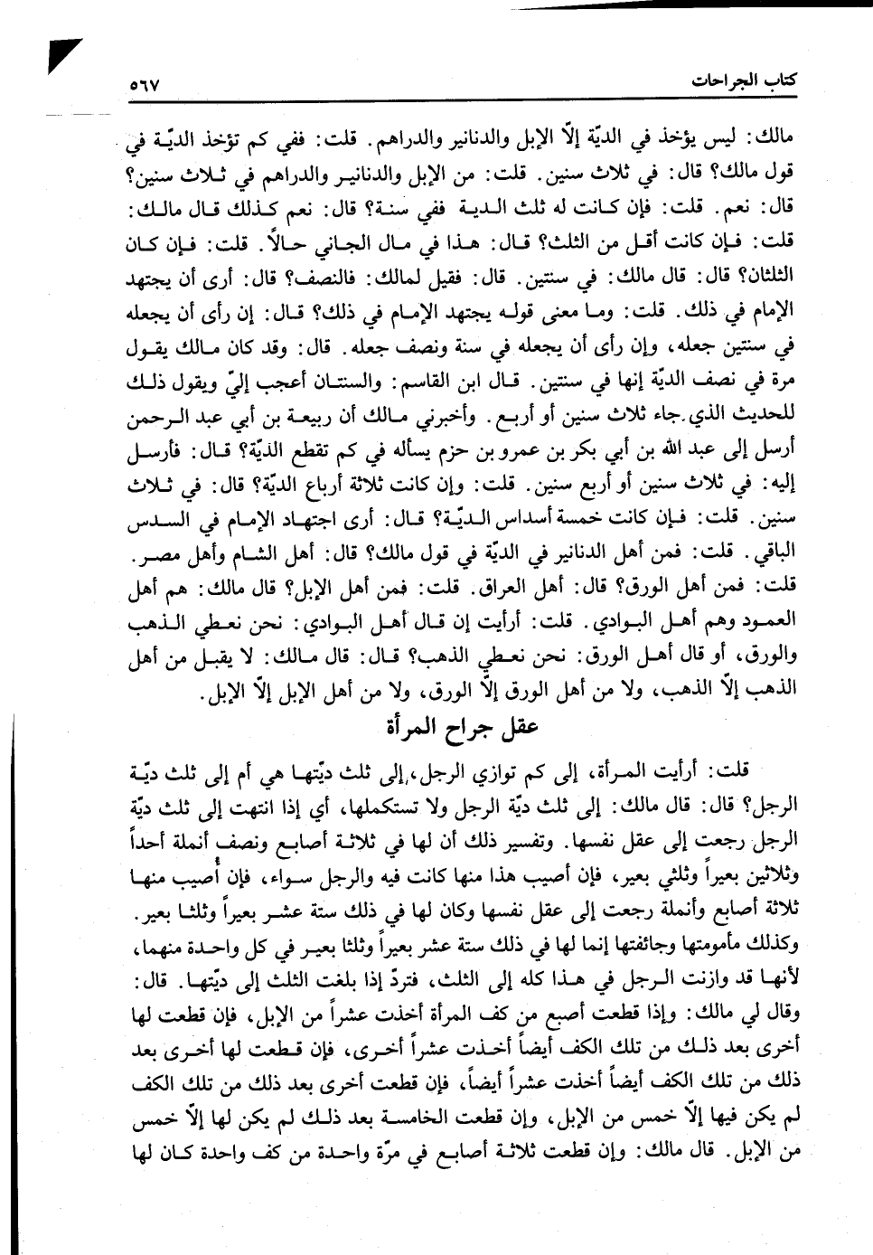 [عَقْلُ جِرَاحِ الْمَرْأَةِ]