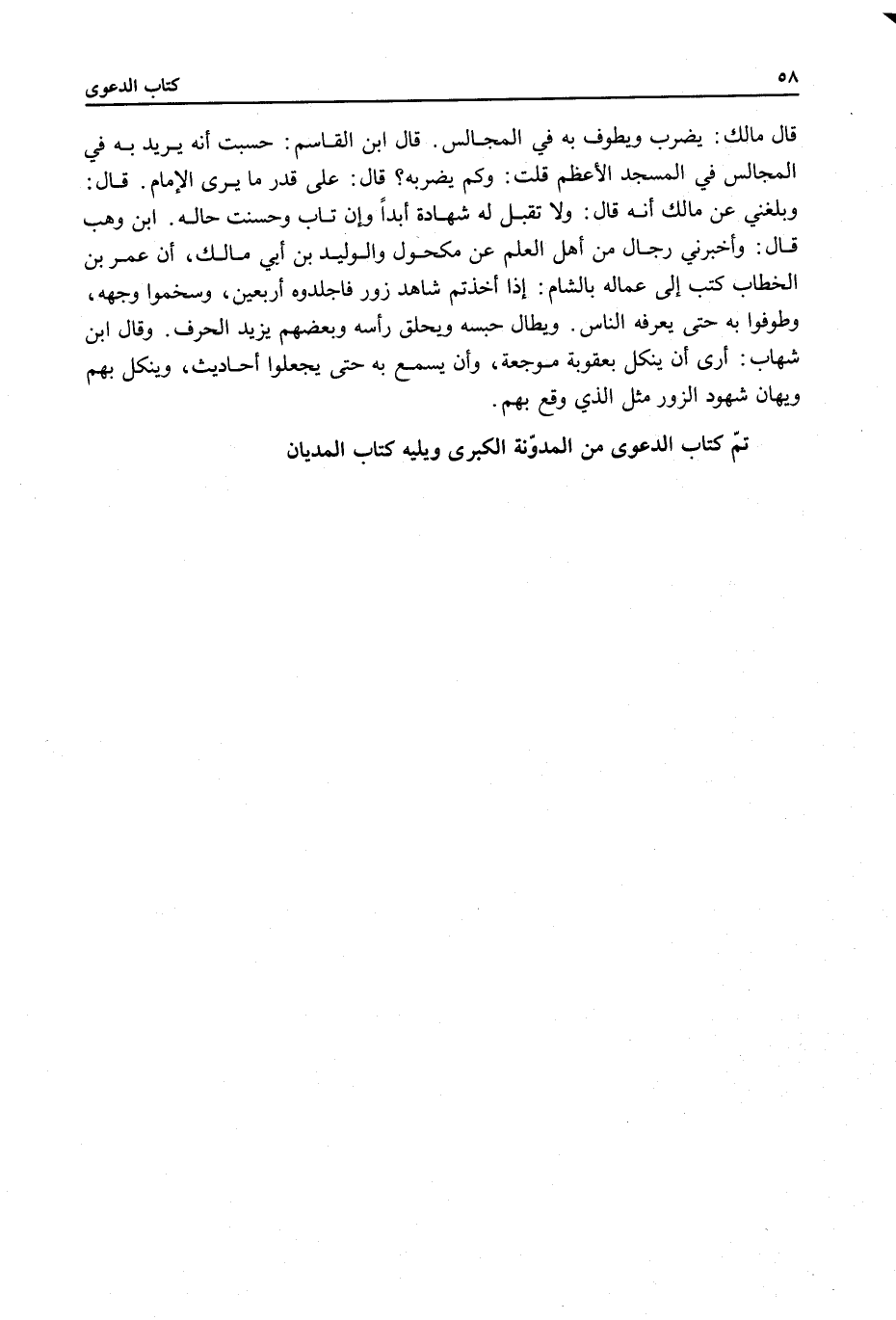 قَالَ ابْنُ الْقَاسِمِ: حَسِبْتُ أَنَّهُ يُرِيدُ بِهِ فِي الْمَجَالِسِ فِي الْمَسْجِدِ الْأَعْظَمِ قُلْتُ: وَكَمْ يَضْرِبُهُ؟
