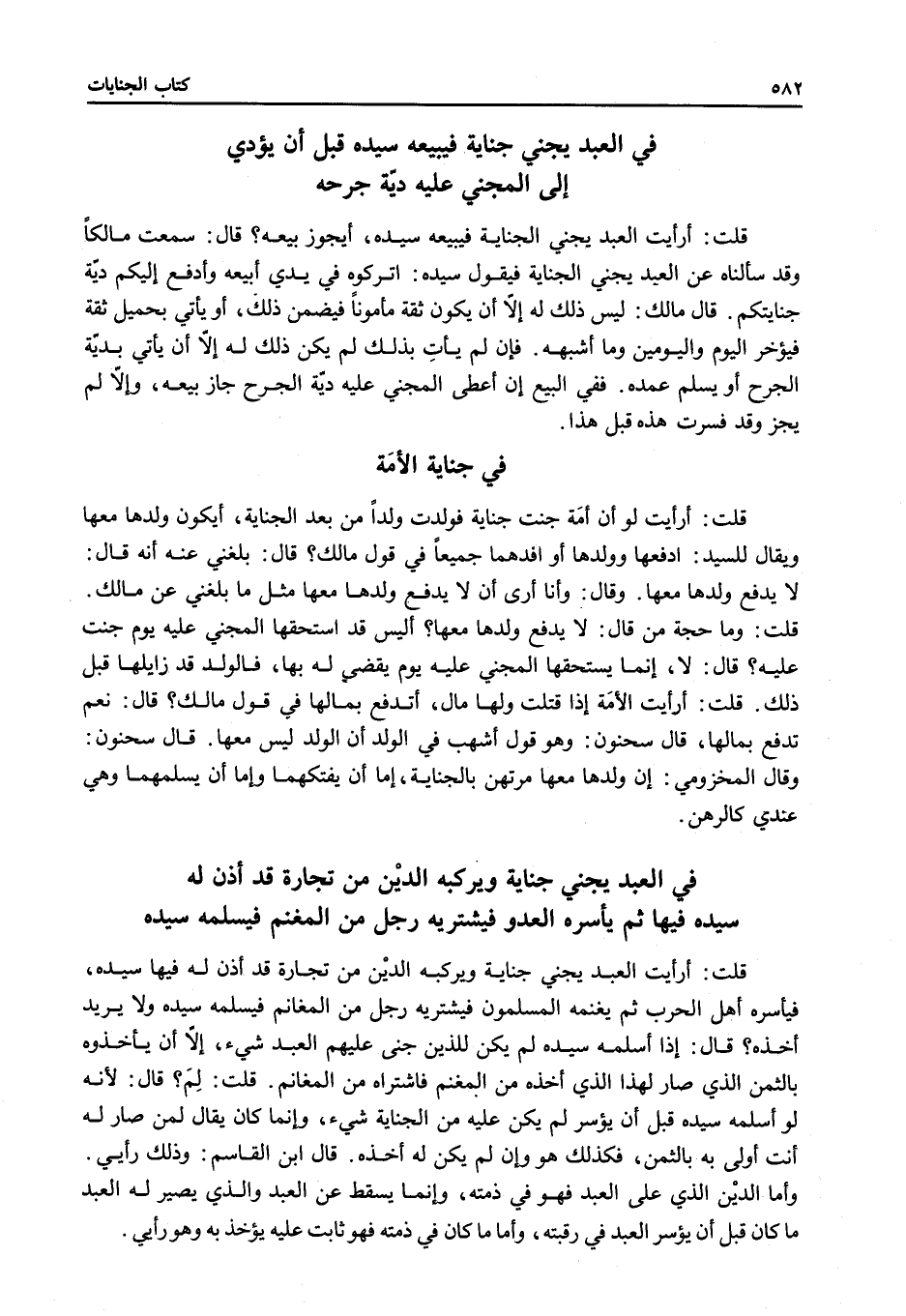قَالَ: سَمِعْتُ مَالِكًا وَقَدْ سَأَلْنَاهُ عَنْ الْعَبْدِ يَجْنِي الْجِنَايَةَ فَيَقُولُ سَيِّدُهُ: اُتْرُكُوهُ فِي يَدِي أَبِيعُهُ وَأَدْفَعُ إلَيْكُمْ دِيَةَ جِنَايَتِكُمْ.