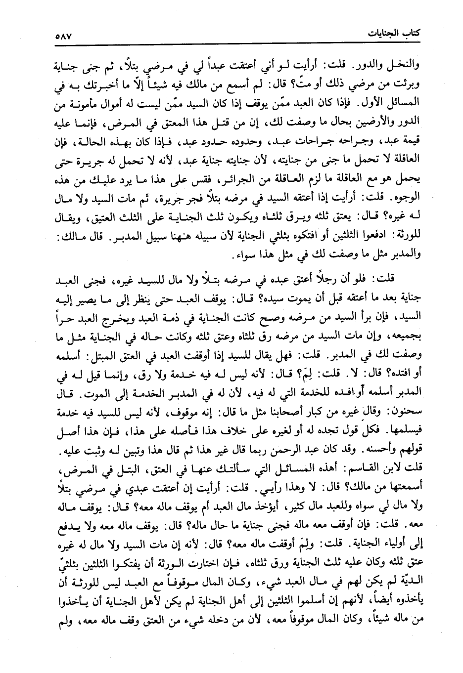 قُلْتُ لِابْنِ الْقَاسِمِ: أَهَذِهِ الْمَسَائِلِ الَّتِي سَأَلْتُكَ عَنْهَا فِي الْعِتْقِ، الْبَتْلِ فِي الْمَرَضِ، أَسْمَعْتَهَا مِنْ مَالِكٍ؟