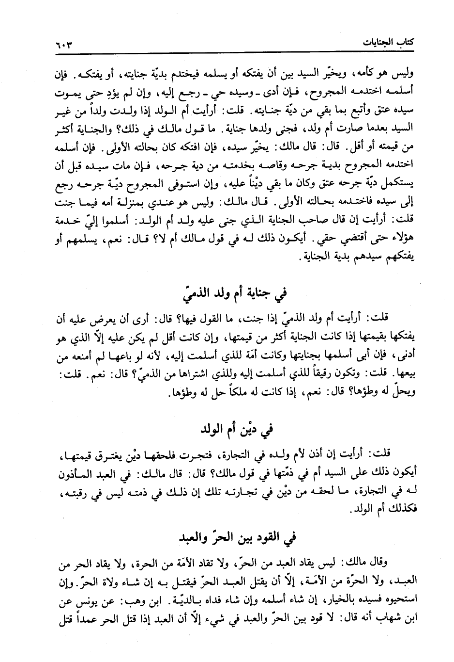فِي جِنَايَةِ أُمِّ وَلَدِ الذِّمِّيِّ قُلْتُ: أَرَأَيْتَ أُمَّ وَلَدِ الذِّمِّيِّ إذَا جَنَتْ، مَا الْقَوْلُ فِيهَا؟