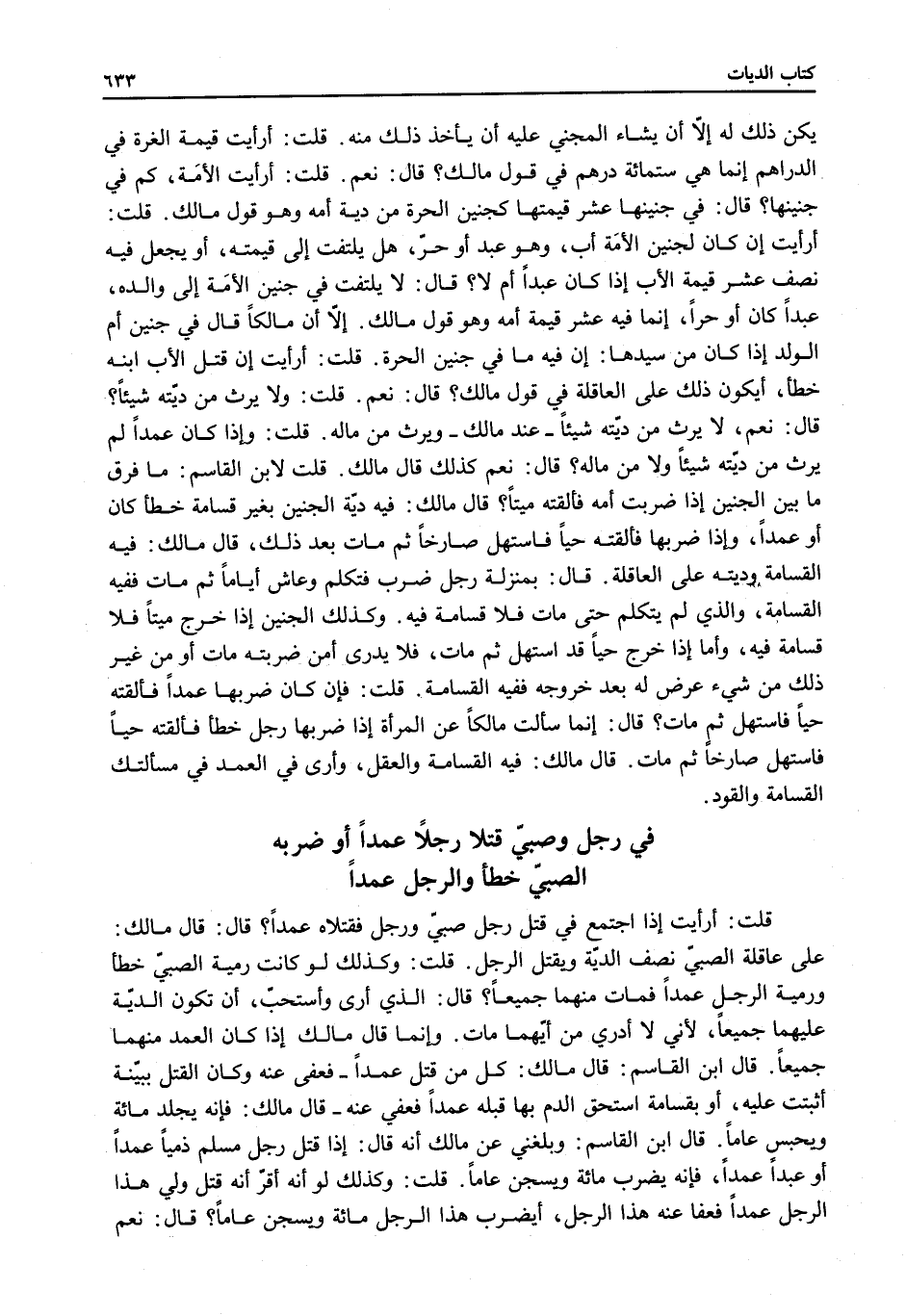 قُلْتُ: أَرَأَيْتَ إذَا اجْتَمَعَ فِي قَتْلِ رَجُلٍ صَبِيٌّ وَرَجُلٌ فَقَتَلَاهُ عَمْدًا؟ قَالَ: قَالَ مَالِكٌ: عَلَى عَاقِلَةِ الصَّبِيِّ نِصْفُ الدِّيَةِ وَيُقْتَلُ الرَّجُلُ.