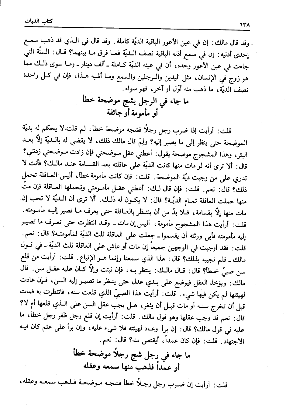 قُلْتُ: أَرَأَيْتَ إذَا ضَرَبَ رَجُلٌ رَجُلًا فَشَجَّهُ مُوضِحَةً خَطَأً، لِمَ قُلْتَ لَا يُحْكَمُ لَهُ بِدِيَةِ الْمُوضِحَةِ حَتَّى يُنْظَرَ إلَى مَا يَصِيرُ إلَيْهِ؟ وَلِمَ قَالَ مَالِكٌ ذَلِكَ، لَا يُقْضَى لَهُ بِالدِّيَةِ إلَّا بَعْدَ الْبِئْرِ، وَهَذَا الْمَشْجُوجُ مُوضِحَةً يَقُولُ: أَعْطِنِي عَقْلَ مُوضِحَتِي فَإِنْ زَادَتْ مُوضِحَتِي زِدْتَنِي؟
