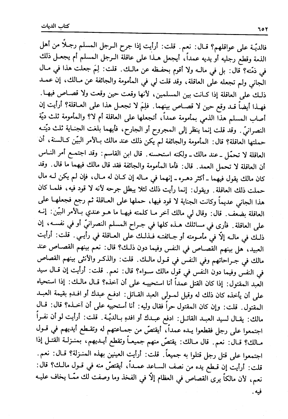 قَالَ: وَقَالَ لِي مَالِكٌ آخِرُ مَا كَلَّمْتُهُ فِيهَا مَا هُوَ عِنْدِي بِالْأَمْرِ الْبَيِّنِ: إنَّهُ عَلَى الْعَاقِلَةِ. فَأَرَى فِي مَسَائِلِكَ هَذِهِ كُلِّهَا فِي جِرَاحِ الْمُسْلِمِ النَّصْرَانِيَّ أَوْ فِي نَفْسِهِ، إنَّ ذَلِكَ فِي مَالِهِ إلَّا فِي مَأْمُومَتِهِ أَوْ جَائِفَتِهِ فَذَلِكَ عَلَى الْعَاقِلَةِ فِي رَأْيِي