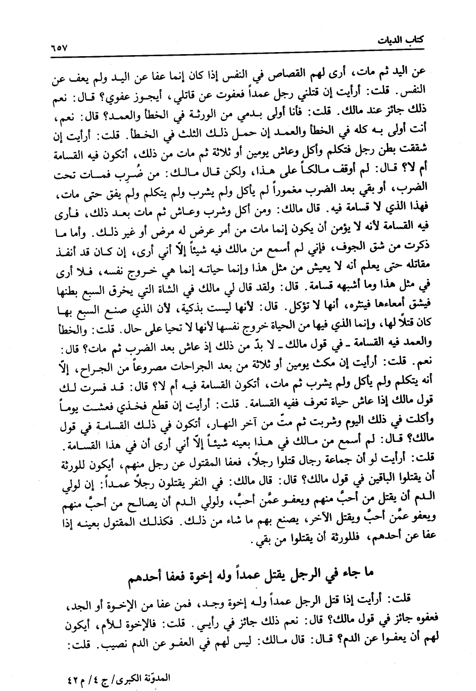 قُلْتُ: أَرَأَيْتَ إنْ قَتَلَنِي رَجُلٌ عَمْدًا فَعَفَوْتُ عَنْ قَاتِلِي، أَيَجُوزُ عَفْوِي؟ قَالَ: نَعَمْ ذَلِكَ جَائِزٌ عِنْدَ مَالِكٍ.