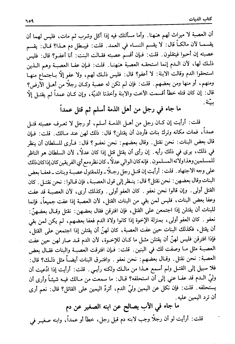 قُلْتُ: أَرَأَيْتَ لَوْ أَنَّ رَجُلًا وَجَبَ لِابْنِهِ دَمٌ قَبْلَ رَجُلٍ، خَطَأً أَوْ عَمْدًا، وَابْنُهُ صَغِيرٌ فِي