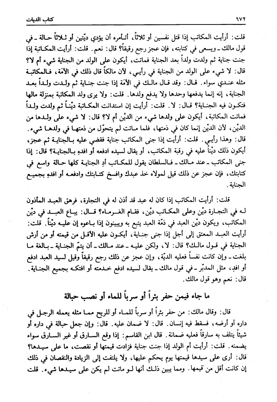 قُلْتُ: أَرَأَيْتَ الْمُكَاتَبَ إذَا قَتَلَ نَفْسَيْنِ أَوْ ثَلَاثًا، أَتَأْمُرُهُ أَنْ يُؤَدِّيَ دِيَتَيْنِ أَوْ ثَلَاثًا حَالَّةً - فِي قَوْلِ مَالِكٍ - وَيَسْعَى فِي كِتَابَتِهِ، فَإِنْ عَجَزَ رَجَعَ رَقِيقًا؟ قَالَ: نَعَمْ.