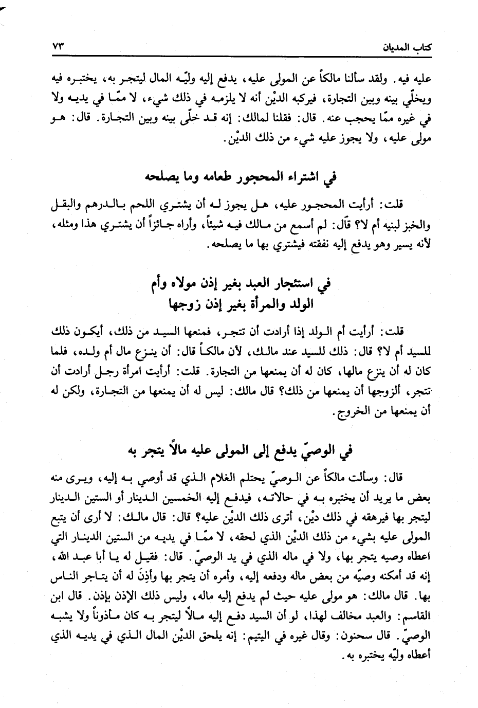 قَالَ: فَقِيلَ لَهُ يَا أَبَا عَبْدِ اللَّهِ إنَّهُ قَدْ أَمْكَنَهُ وَصِيُّهُ مِنْ بَعْضِ مَالِهِ وَدَفَعَهُ إلَيْهِ، وَأَمَرَهُ أَنْ يَتَّجِرَ بِهَا وَأَذِنَ لَهُ أَنْ يُتَاجِرَ النَّاسَ بِهَا.