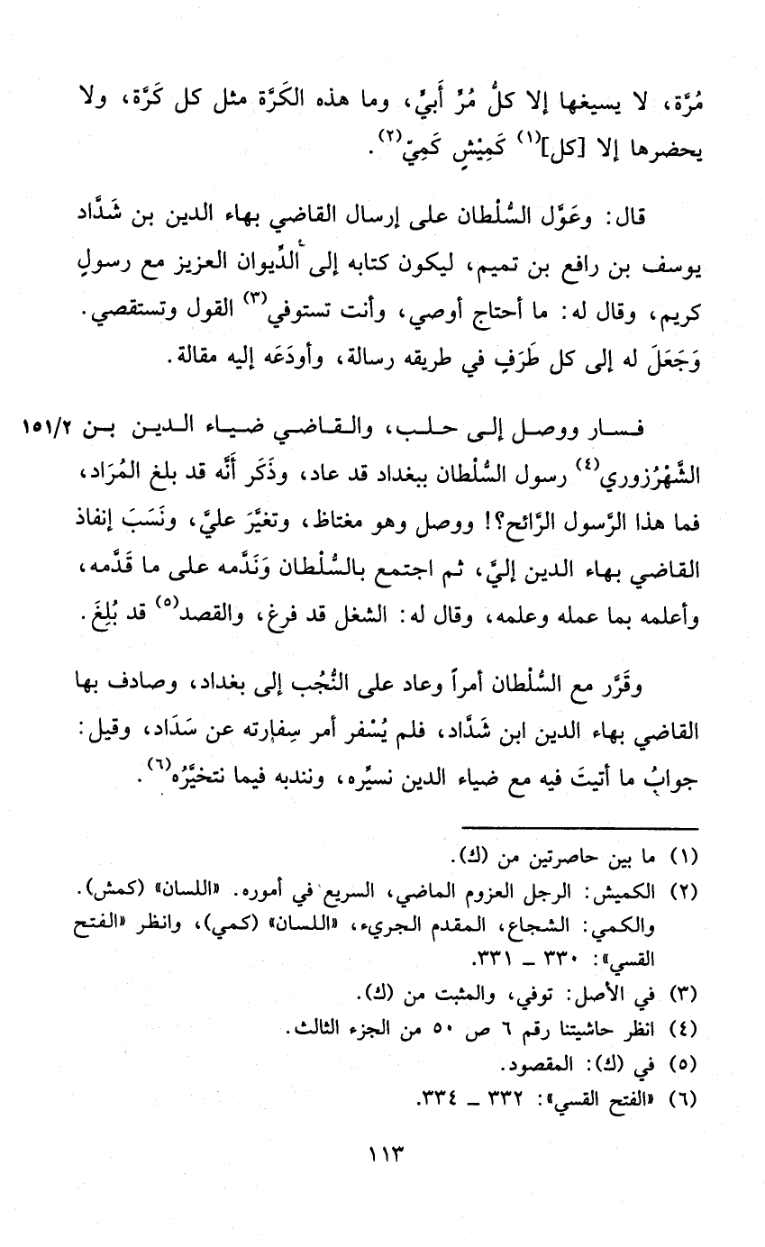 فَسَار وَوصل إِلَى حلب وَالْقَاضِي ضِيَاء الدّين بن الشهرزوري رَسُول السُّلْطَان بِبَغْدَاد قد عَاد وَذكر أَنه قد بلغ المُرَاد فَمَا هَذَا الرَّسُول الرَّائِح وَوصل وَهُوَ مغتاظ وَتغَير عَليّ وَنسب إِنْفَاذ القَاضِي بهاء الدّين إِلَيّ ثمَّ اجْتمع بالسلطان وندمه على مَا قدمه وأعلمه بِمَا عمله وَعلمه وَقَالَ لَهُ الشّغل قد فرغ وَالْقَصْد قد بلغ