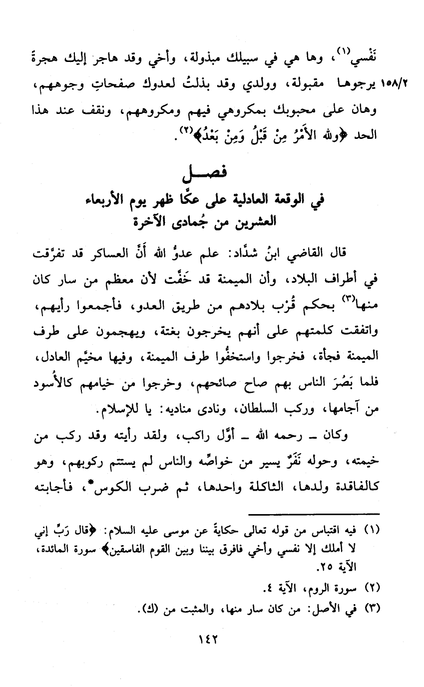 فصل فِي الْوَقْعَة العادلية على عكا ظهر يَوْم الْأَرْبَعَاء الْعشْرين من جُمَادَى الْآخِرَة