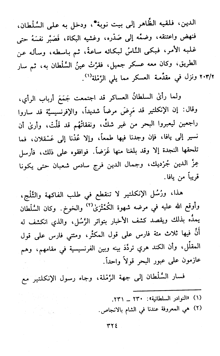 فَسَار السُّلْطَان إِلَى جِهَة الرملة وَجَاء رَسُول الإنكلتير مَعَ