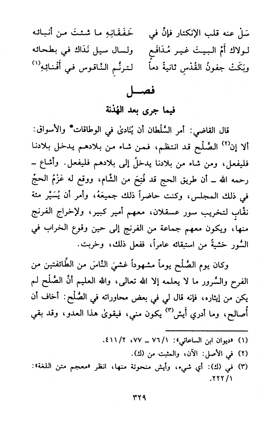 فصل فِيمَا جرى بعد الْهُدْنَة