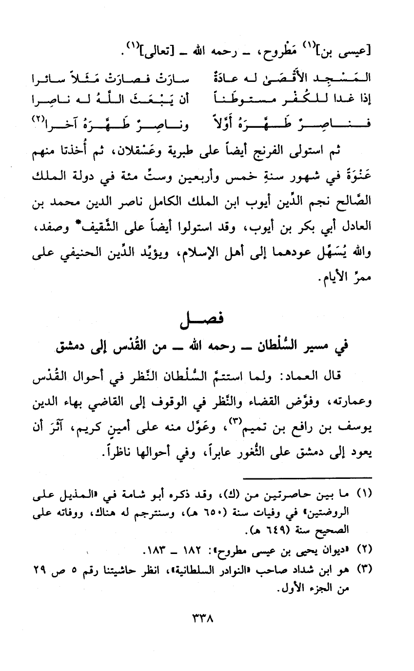فصل فِي مسير السُّلْطَان - رَحمَه الله - من الْقُدس إِلَى دمشق