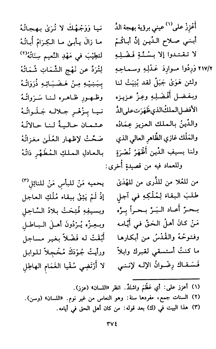 وللعماد فِيهِ من قصيدة أُخْرَى
