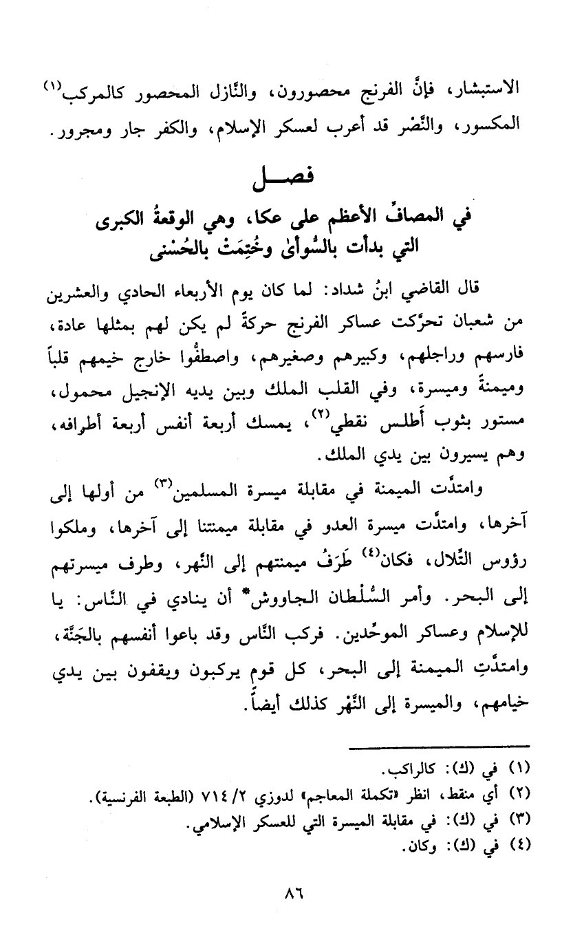 فصل فِي المصاف الْأَعْظَم على عكا وَهِي الْوَقْعَة الْكُبْرَى الَّتِي بدأت بالسوأى وختمت بِالْحُسْنَى