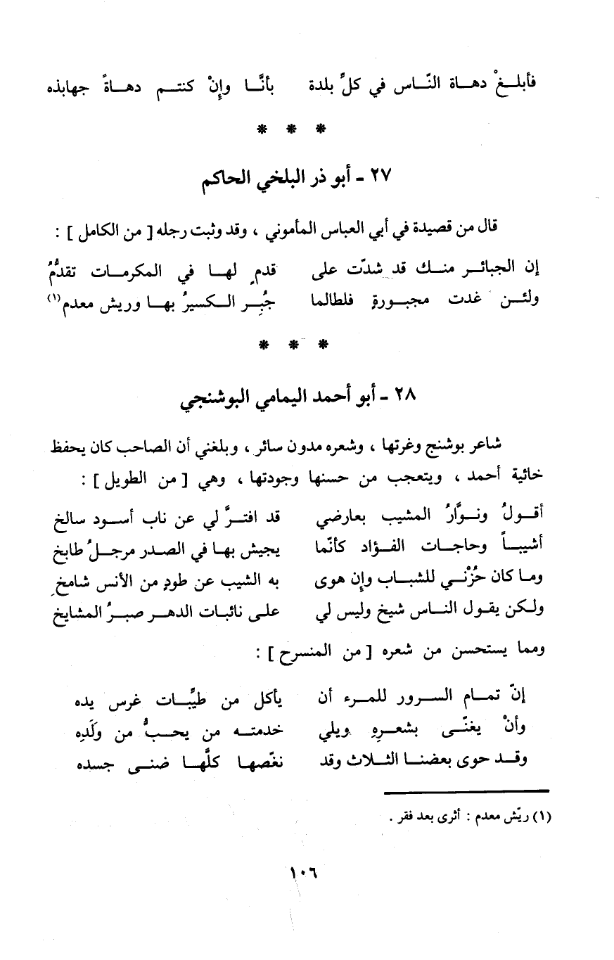 شَاعِر بوشنج وغرتها وشعره مدون سَائِر وَبَلغنِي أَن الصاحب كَانَ يحفظ خائية أَحْمد ويتعجب من حسنها وجودتها وَهِي