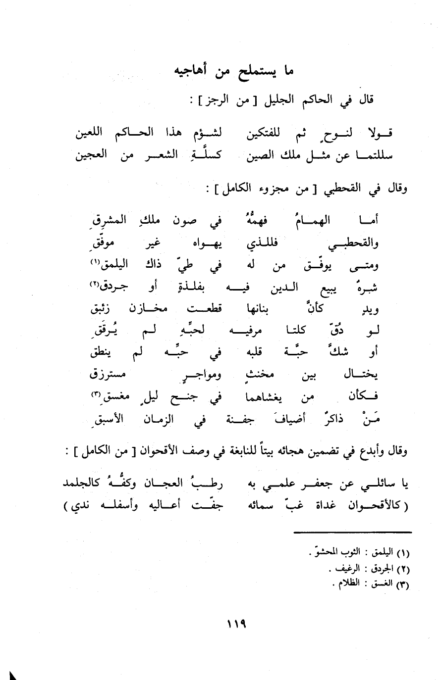 (سللتما عَن مثل ملك الصين ... كسلة الشّعْر من الْعَجِين) // من الرجز //