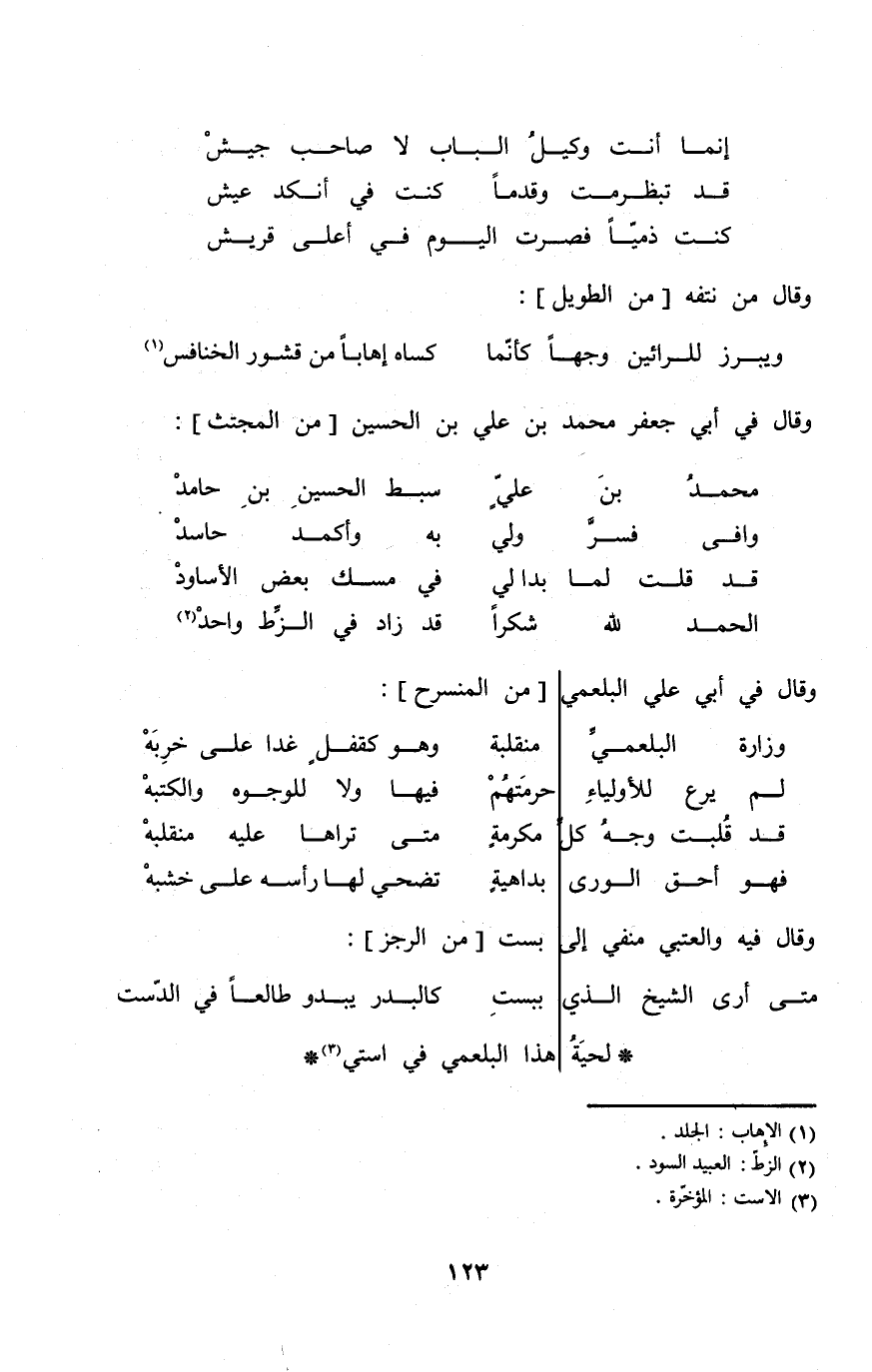 (الْحَمد لله شكرا ... قد زَاد فِي الزط وَاحِد) // من المجتث //