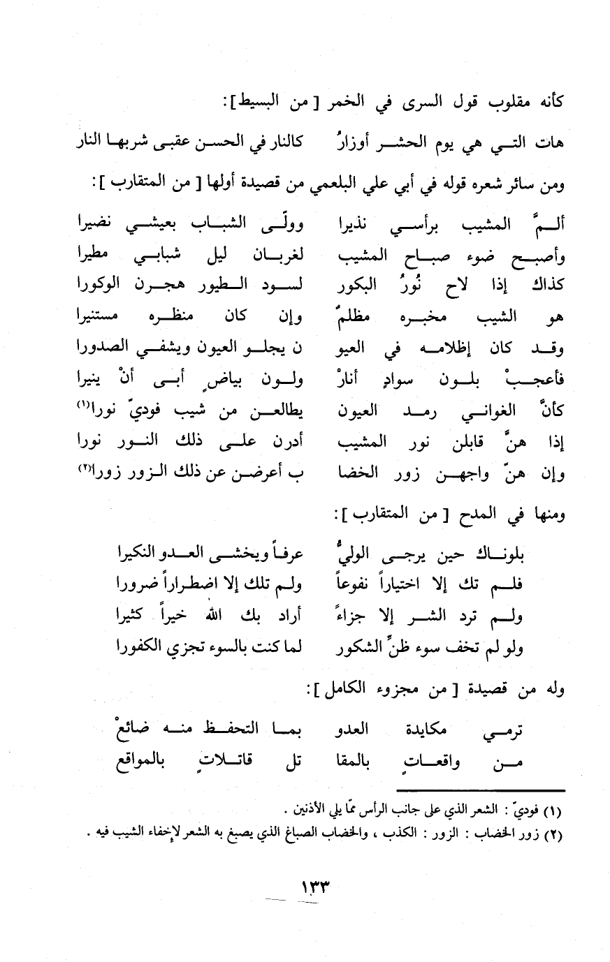 (وَإِن هن واجهن زور الخضاب ... أعرضن عَن ذَلِك الزُّور زورا) // من المتقارب //