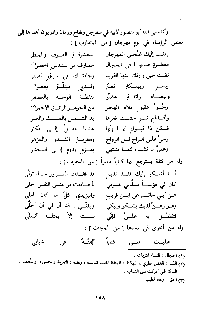 (بعثت إِلَيْك ضحى المهرجان ... بمعشوقة الْعرف والمنظر)