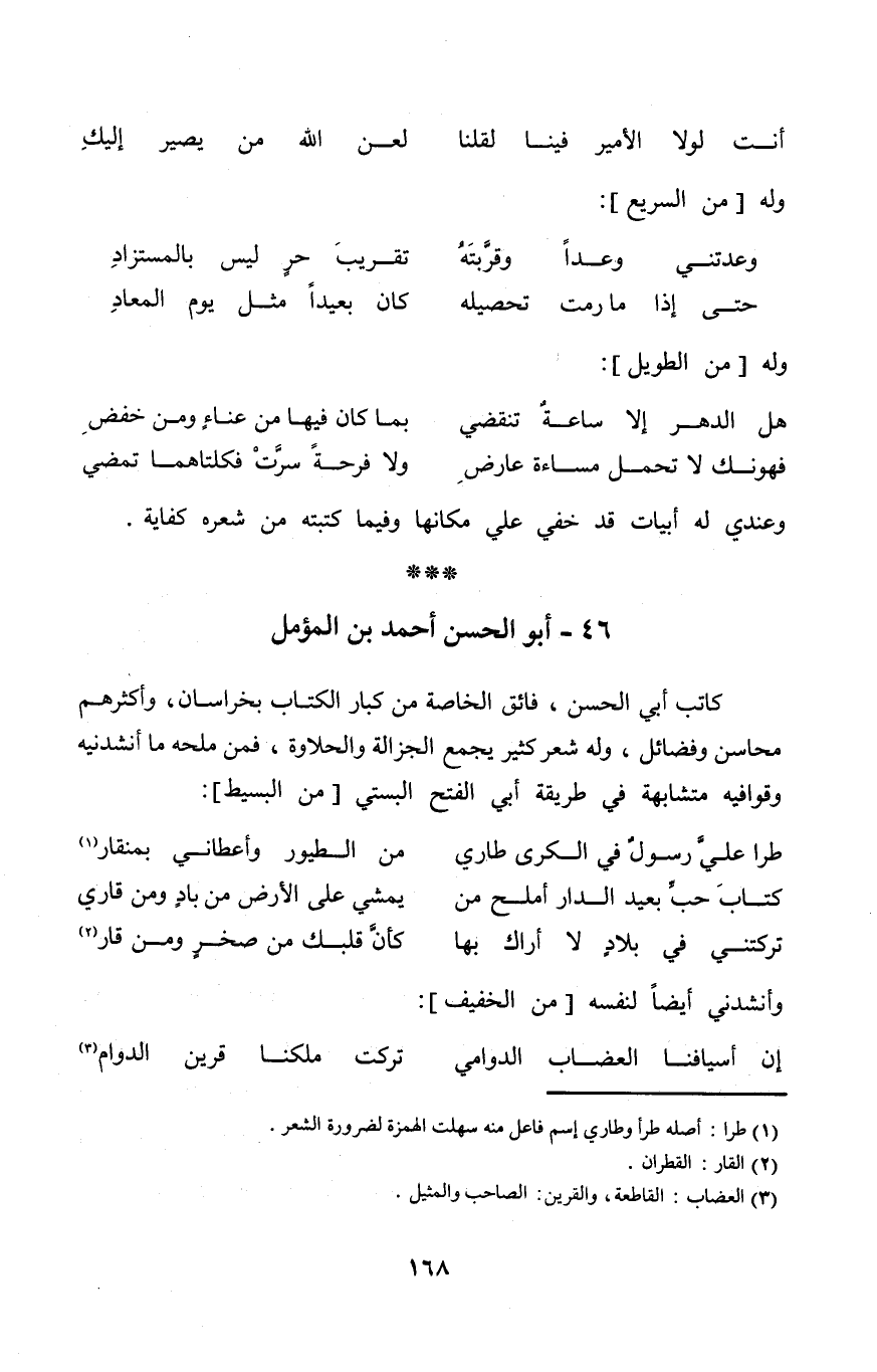 (أَنْت لَوْلَا الْأَمِير فِينَا لقلنا ... لعن الله من يصير إِلَيْك) // من الْخَفِيف //