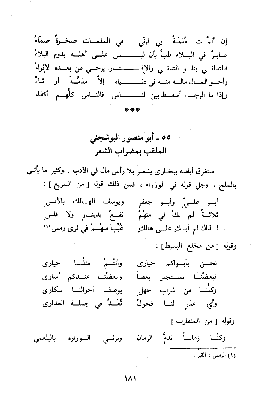 55 - أَبُو مَنْصُور البوشجني الملقب بمضراب الشّعْر