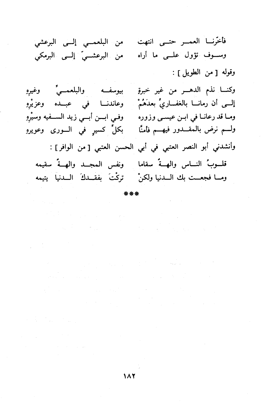 (فأخرنا الْعُمر حَتَّى انْتَهَت ... من البلعمي إِلَى البرعشي)