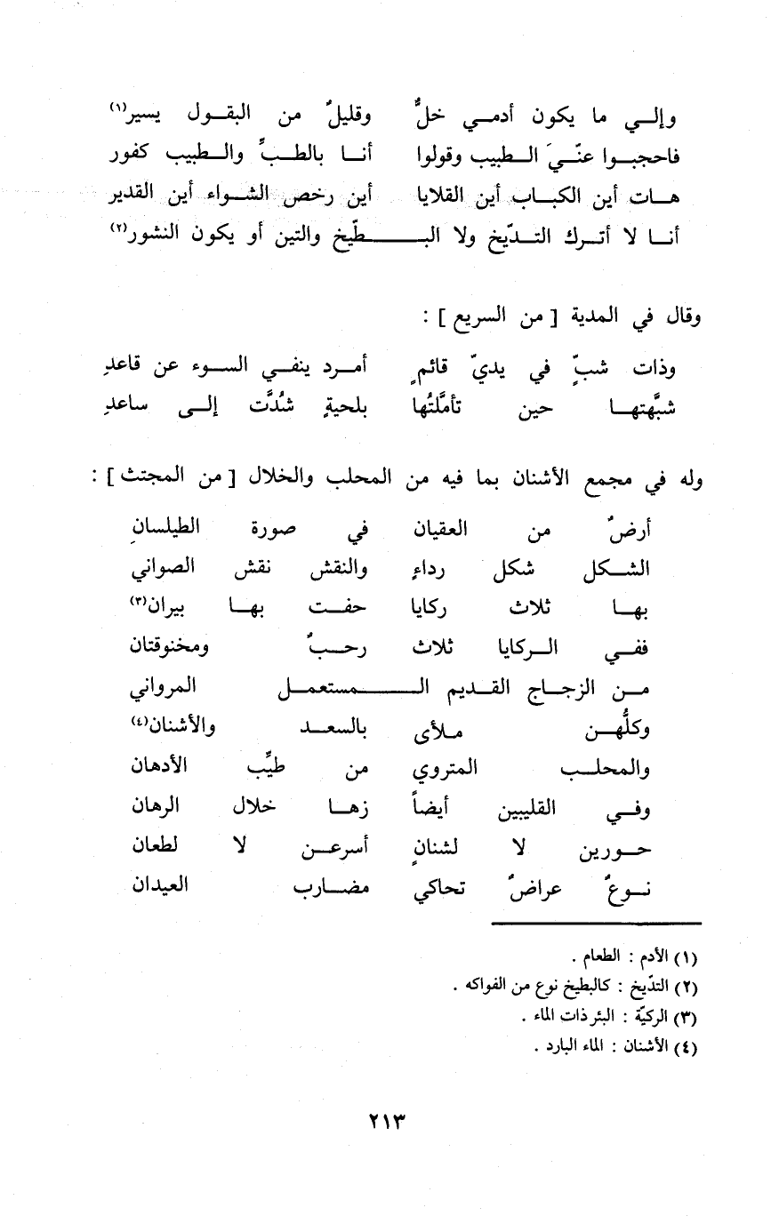 (هَات أَيْن الكباب أَيْن القلايا ... أَيْن رخص الشواء أَيْن الْقَدِير)