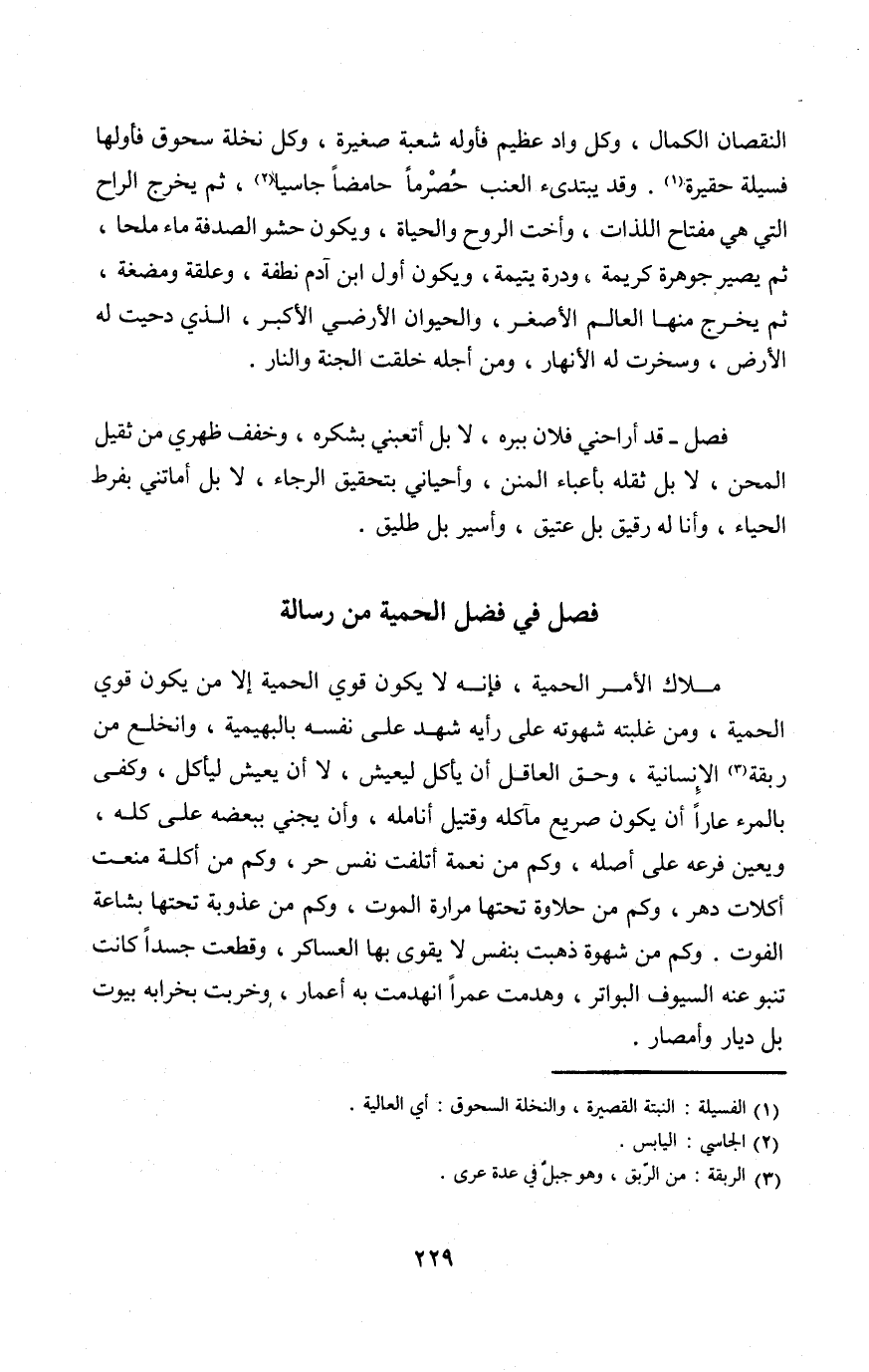 فصل فِي فضل الحمية من رِسَالَة
