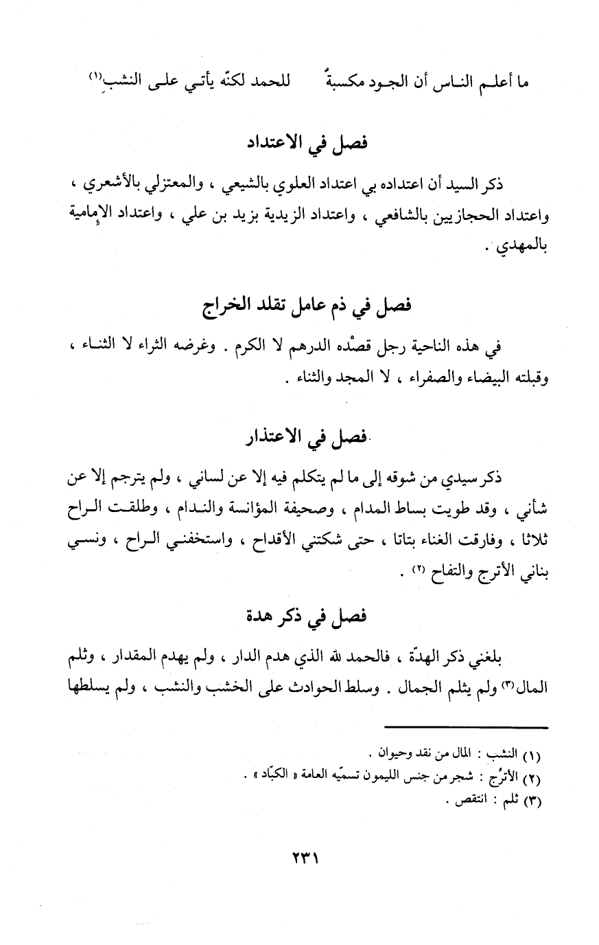 ذكر السَّيِّد أَن اعتداده بِي اعْتِدَاد الْعلوِي بالشيعي والمعتزلي بالأشعري واعتداد الْحِجَازِيِّينَ بالشافعي واعتداد الزيدية بزيد بن عَليّ واعتداد الإمامية بالمهدي