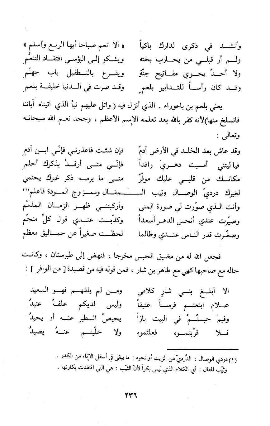 فَجعل الله لَهُ من مضيق الْحَبْس مخرجا فَنَهَضَ إِلَى طبرستان وَكَانَت حَاله مَعَ صَاحبهَا كهي مَعَ طَاهِر بن شار فَمن قَوْله فِيهِ من قصيدة