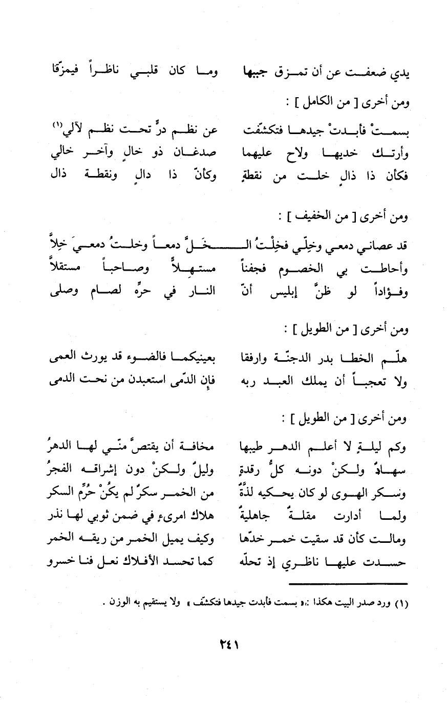 (قد عَصَانِي دمعي وخلي فخلت الْخلّ ... دمعا وخلت دمعي خلا)