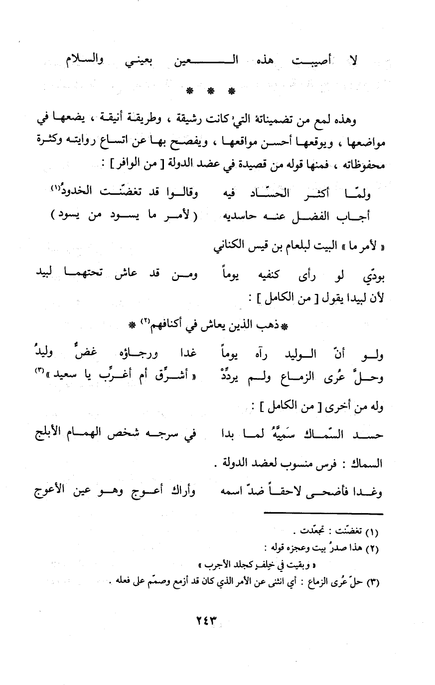 (لَا أُصِيبَت هَذِه الْعين ... بعيني وَالسَّلَام) // من مجزوء الرمل //