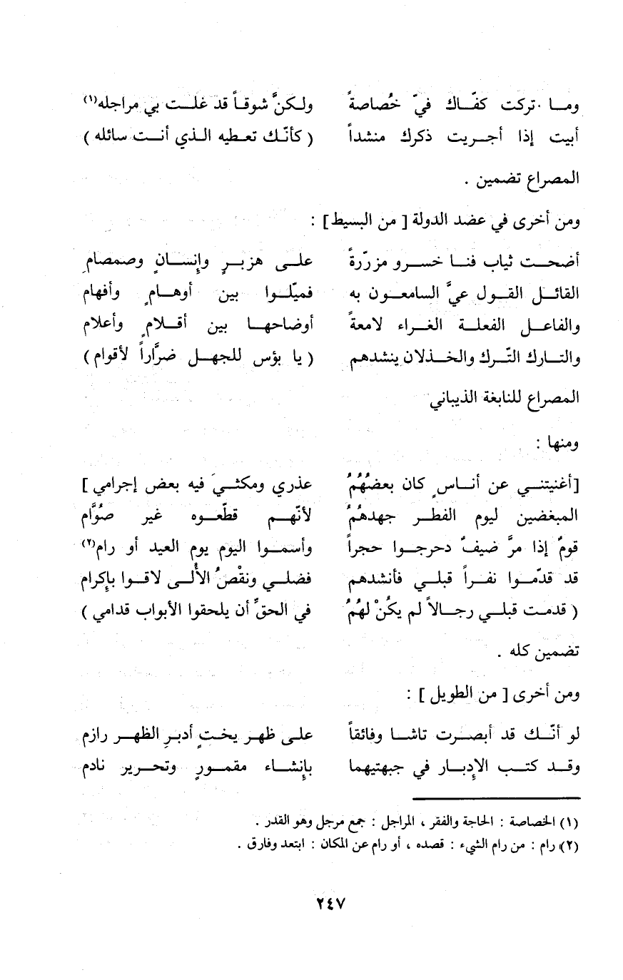 (أضحت ثِيَاب فَنًّا خسرو مزررة ... على هزبر وإنسان وصمصام)