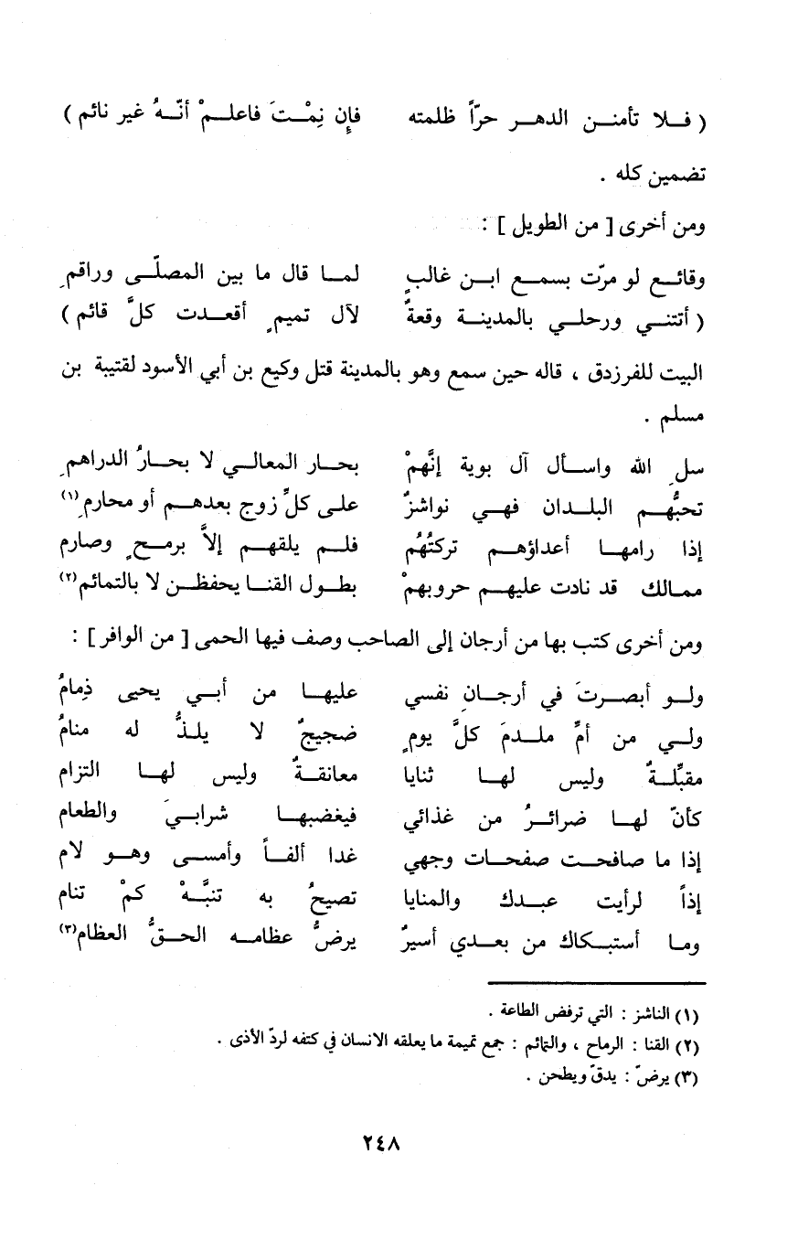(فَلَا تأمنن الدَّهْر حرا ظلمته ... فَإِن نمت فَاعْلَم أَنه غير نَائِم) // من الطَّوِيل //