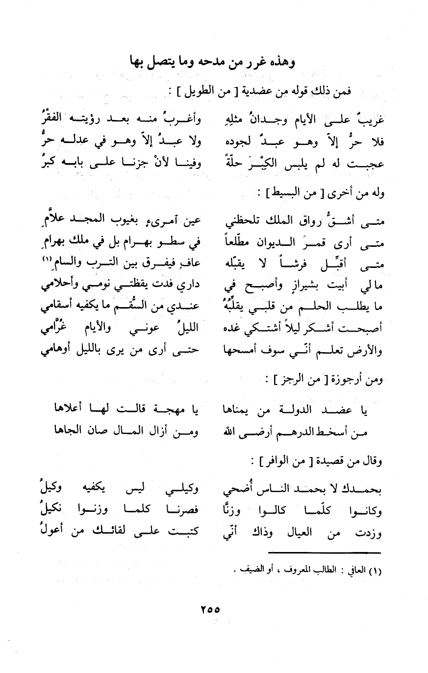(مَتى أرى قمر الدِّيوَان مطلعا ... فِي سطو بهْرَام بل فِي ملك بهْرَام)