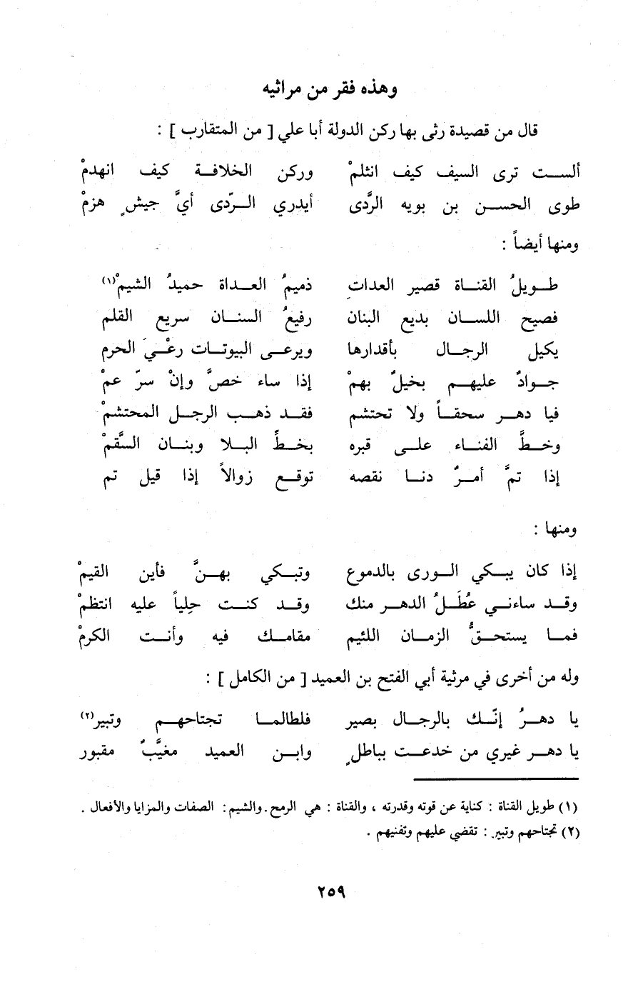 وَله من أُخْرَى فِي مرثية أبي الْفَتْح بن العميد