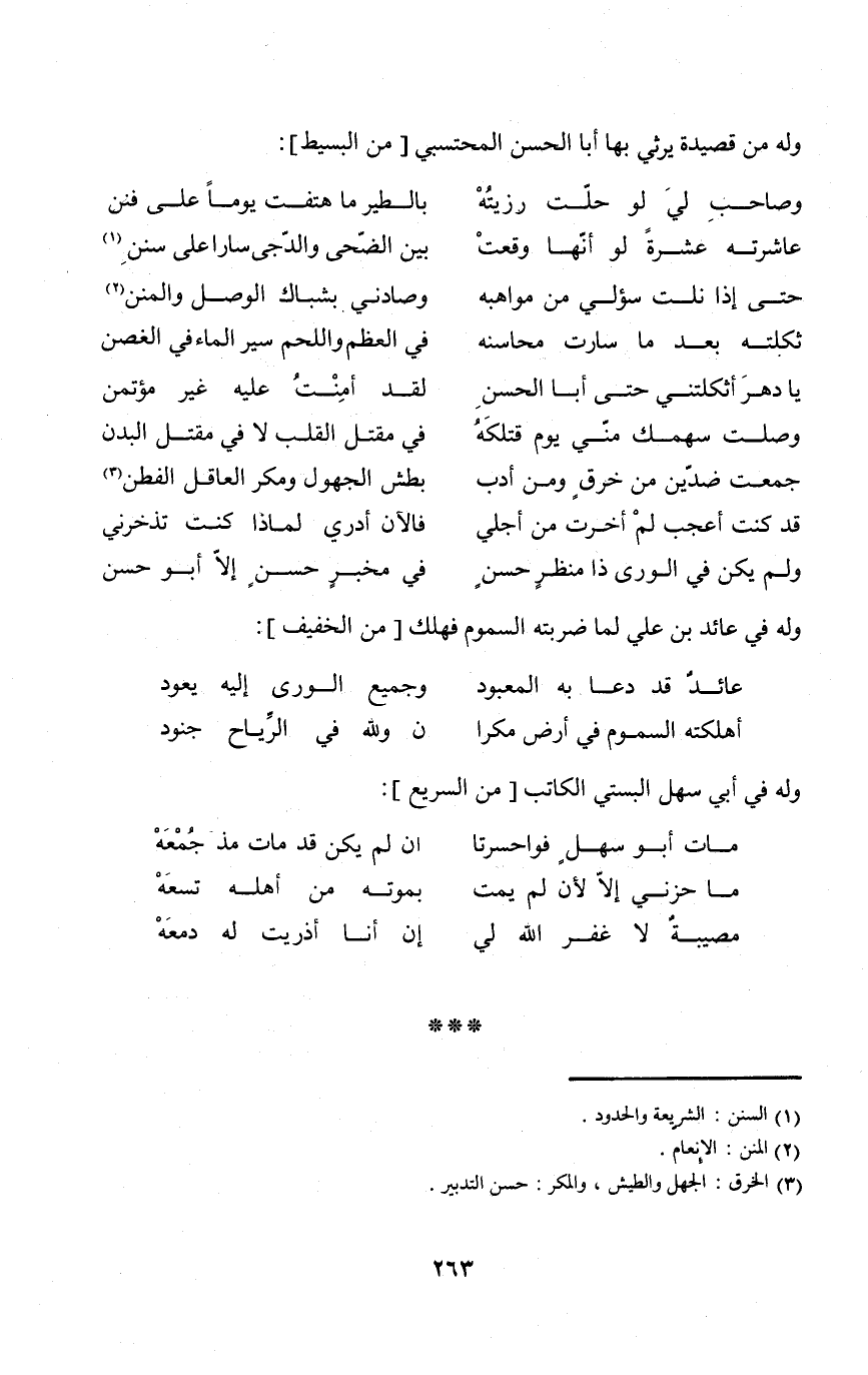 وَله من قصيدة يرثي بهَا أَبَا الْحسن المحتسبي