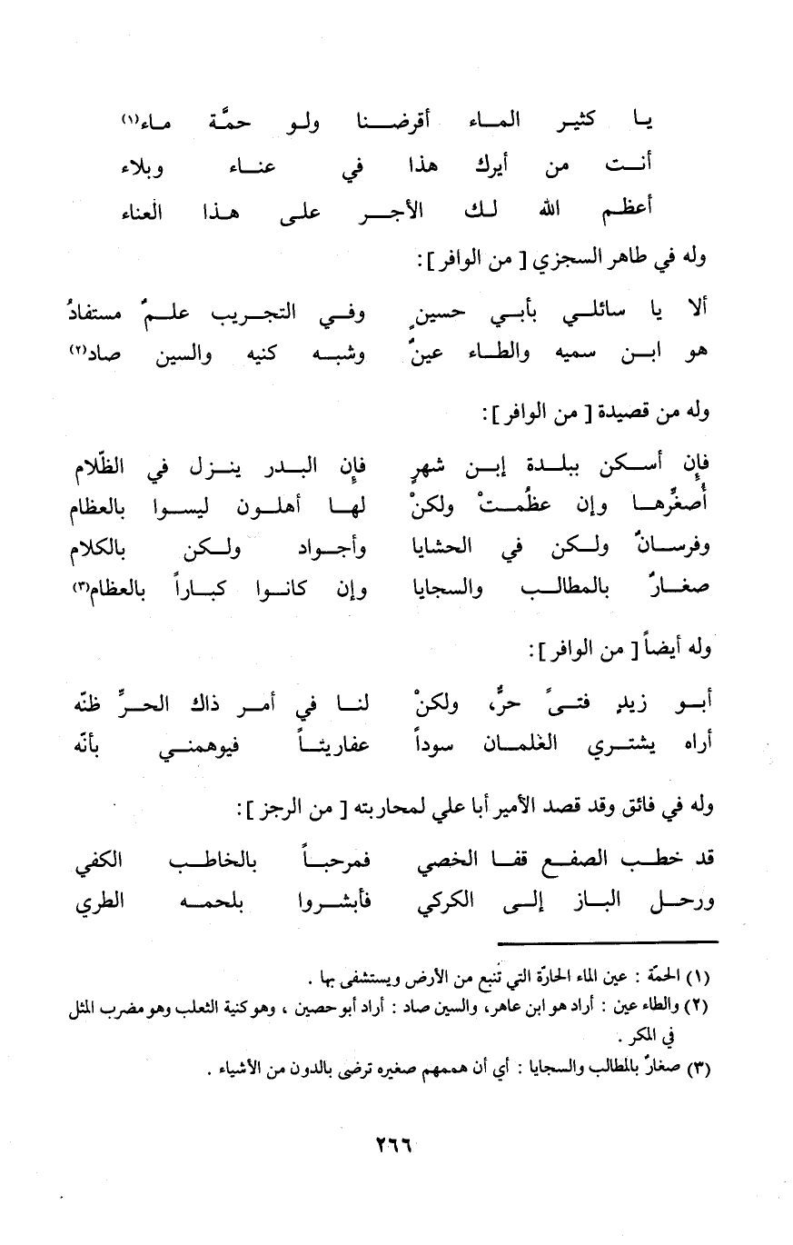 (يَا كثير المَاء أقرضنا ... وَلَو حمة مَاء)