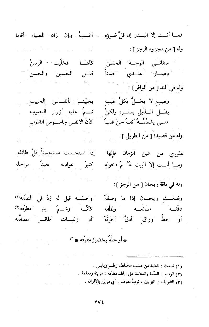 (دققه صانعه ولطفه ... كَأَنَّهُ وشم يَد مطرفه)