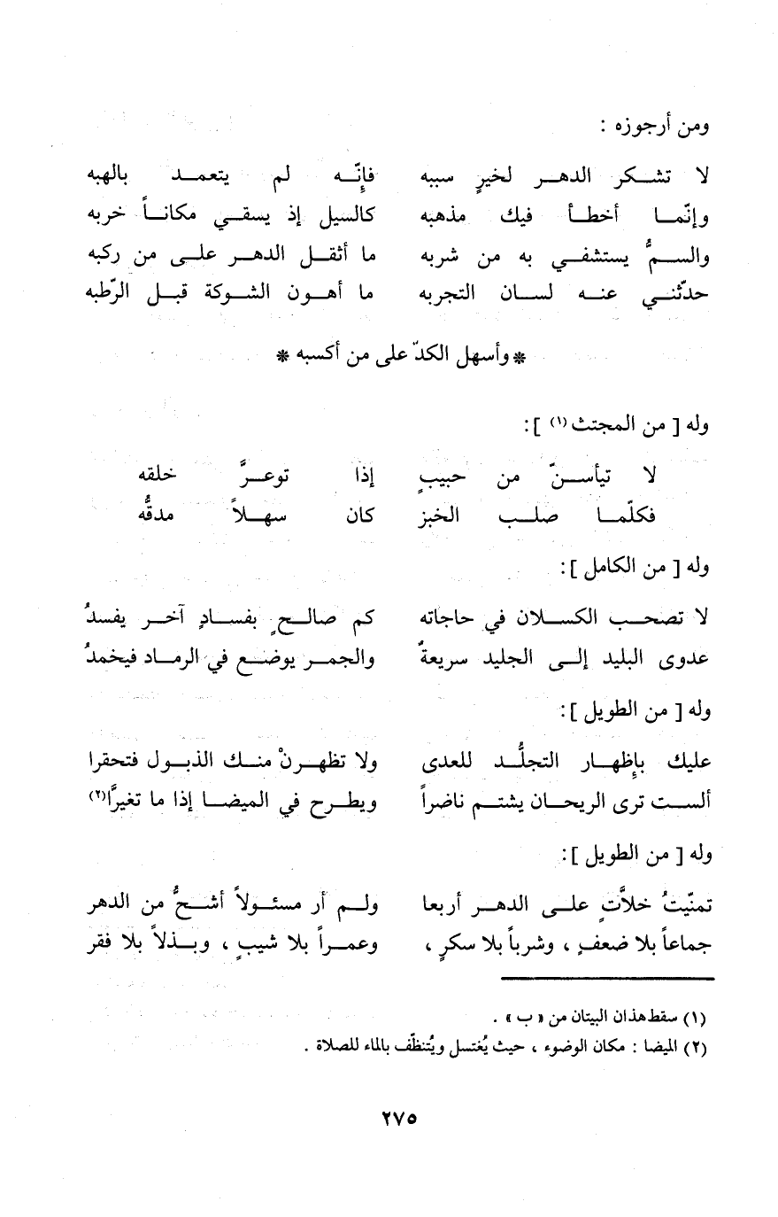 (لَا تشكر الدَّهْر لخير سَببه ... فَإِنَّهُ لم يتَعَمَّد بالهبه)